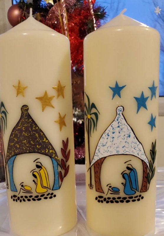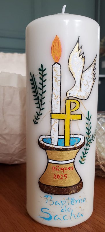 Le cierge pascal se décline en deux versions, de tailles différentesJe peux faire le motif et la décoration que vous souhaiterez !